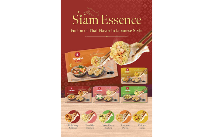 • โอโยชิ อีทโตะ เกี๊ยวซ่า “สยาม เอสเซนส์” (Siam Essence) เกี๊ยวซ่าสไตล์ญี่ปุ่นที่ถ่ายทอดเสน่ห์รสชาติไทย ผ่าน 5 ไส้เมนูยอดนิยม ได้แก่ แกงแดง แกงเขียวหวาน ต้มยำกุ้ง ต้มข่าไก่ และไก่สะเต๊ะ ตอบโจทย์กลุ่มผู้บริโภค “Adventurous Foodies” ที่มองหาประสบการณ์รสชาติใหม่ ๆ