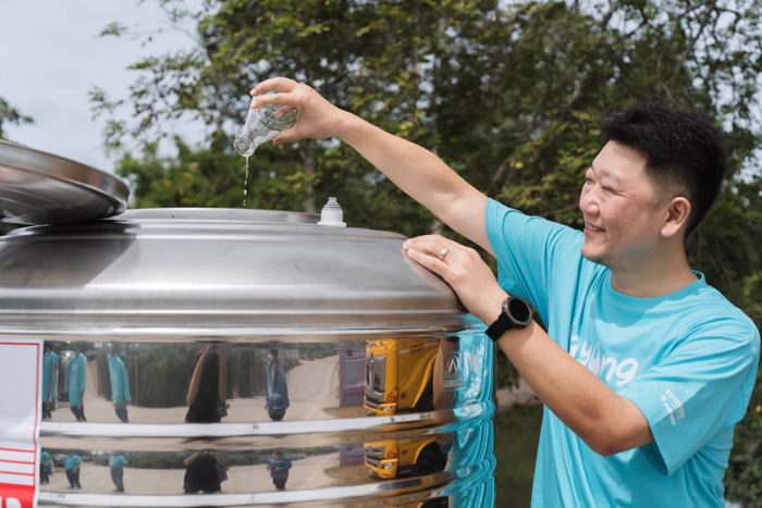 ซันโทรี่ เป๊ปซี่โค ประเทศไทย ให้การสนับสนุนกิจกรรมติดตั้งถังหยดน้ำยาจุลินทรีย์จำนวน 10 ถัง เพื่อปรับปรุงคุณภาพน้ำเขตเทศบาลนครระยองตั้งแต่ปี 2567 ซึ่งหลังการดำเนินการในปีแรก เทศบาลนครระยองได้เก็บตัวอย่างเพื่อตรวจสอบคุณภาพน้ำอย่างต่อเนื่องและพบว่าค่าความเป็นกรดด่าง (pH) และค่าออกซิเจนละลายน้ำในจุดที่ติดตั้งถังหยดน้ำยาจุลินทรีย์นั้นเพิ่มขึ้นมาก ส่งผลให้คุณภาพน้ำและระบบนิเวศในแหล่งน้ำดีขึ้น ในปีนี้ จึงสนับสนุนการติดตั้งถังหยดน้ำยาจุลินทรีย์ตามแนวแม่น้ำระยองเพิ่มเติมอีก 10 ถัง เพื่อแก้ไขปัญหาคุณภาพน้ำในพื้นที่ชุมชนให้ได้มาก ยิ่งขึ้น