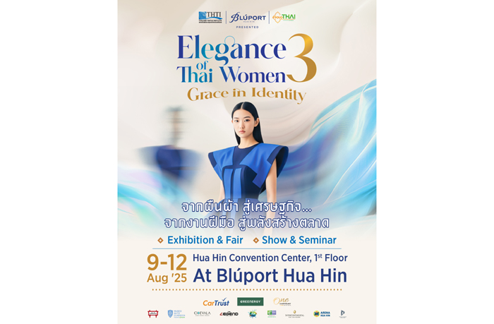 บลูพอร์ต หัวหิน และกลุ่มบริษัทพราว ร่วมกับ สถาบันพัฒนาอุตสาหกรรมสิ่งทอ (THTI) พร้อมด้วยพันธมิตรจากภาครัฐและเอกชน เดินหน้าจัดงาน “Elegance of Thai Women” อย่างต่อเนื่องเป็นปีที่3 โดยในปีนี้มาพร้อมแนวคิด “Grace in Identity ความงามที่เปล่งประกายจากรากเหง้า” เพื่อร่วมเฉลิมฉลอง เทศกาลวันแม่แห่งชาติ และ วันผ้าไทยแห่งชาติ ระหว่างวันที่ 9–12 สิงหาคม 2568 ณ หัวหินคอนเวนชั่น เซ็นเตอร์ ชั้น 1 บลูพอร์ต หัวหิน