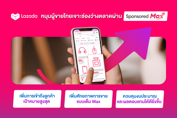เพื่อเสริมศักยภาพให้ผู้ขายไทยพร้อมรับมือกับทุกความท้าทายในโลกอีคอมเมิร์ซ ลาซาด้าจึงเดินหน้าสนับสนุนให้ ผู้ขายใช้ประโยชน์จาก AI อย่างเต็มที่ ด้วยการเปิดตัวฟีเจอร์ Sponsored Max หนึ่งในเครื่องมือโปรโมตสินค้าภายใต้ Lazada Sponsored Solutions ที่ขับเคลื่อนด้วยเทคโนโลยี AI ถูกออกแบบมาเพื่อช่วยเพิ่มประสิทธิภาพการขายให้กับผู้ขายไทยอย่างครบวงจร ออกแบบมาให้ใช้งานง่าย ปรับแต่งการตั้งค่าได้ภายในไม่กี่คลิก เหมาะทั้งผู้ขายมือใหม่และมืออาชีพ โดยทำหน้าที่เสมือน “ผู้ช่วยหลังบ้าน” ที่เข้ามาเสริมกลยุทธ์ทางธุรกิจในหลากหลายด้าน อาทิ