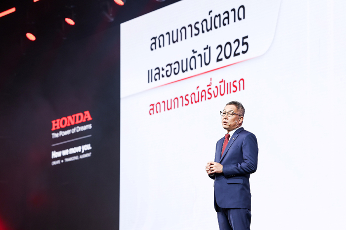 มร.ยูอิจิ ชิมิซุ ประธานกรรมการบริหารบริษัท ไทยฮอนด้า จำกัด กล่าวเปิดงาน “ในช่วงครึ่งปีที่ผ่านมา ไทยฮอนด้า ได้เผชิญทั้งความท้าทายและโอกาส พร้อมก้าวผ่านช่วงเวลาสำคัญไปพร้อมกับลูกค้าและพันธมิตรทุกฝ่าย ในช่วงครึ่งปีแรก ยอดขายรวมของตลาดรถจักรยานยนต์อยู่ที่ 1.06 ล้านคัน หรือ เพิ่มขึ้น 101% เมื่อเทียบกับปีที่ผ่านมา ขณะที่ยอดขายของไทยฮอนด้าอยู่ที่ 0.86 ล้านคัน หรือ เติบโต 102% เมื่อเทียบกับช่วงเวลาเดียวกันของปีก่อน สำหรับตลาดรวมตลอดปี 2568 เราคาดการณ์เหมือนตอนต้นปีว่าจะมียอดขายรวมอยู่ที่ 1.68 ถึง 1.73 ล้านคัน หรือ เติบโตประมาณ 101% ส่วนไทยฮอนด้าตั้งเป้ายอดขายไว้ที่ 1.36 ถึง 1.40 ล้านคัน หรือราว 102% เมื่อเทียบกับปีก่อน ซึ่งสะท้อนถึงความเชื่อมั่นของผู้บริโภคที่มีต่อผลิตภัณฑ์และบริการของฮอนด้าอย่างต่อเนื่อง”