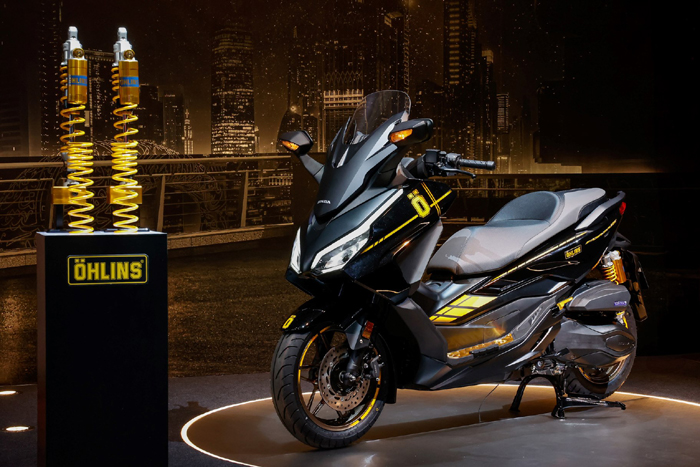 New Honda Forza 350 Special Edition x Öhlins เสริมลุคสปอร์ตด้วยชุดสติกเกอร์ Öhlins รอบคัน สะท้อนความพรีเมียมด้วย โลโก้ Bold Emblem สีทอง มาพร้อมชุดแผ่นวางเท้าและพักเท้าหลังจาก H2C จำนวนจำกัดเพียง 500 คันทั่วประเทศ ราคาแนะนำ 207,000 บาท