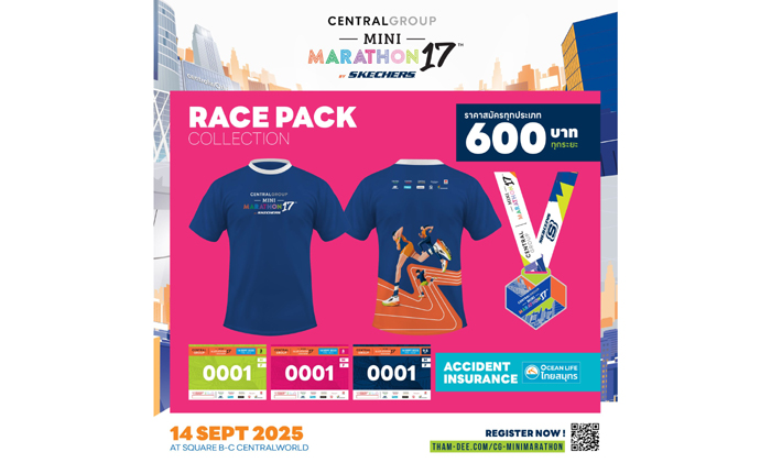 ไม่ว่าคุณจะเป็นนักวิ่งมือใหม่ นักวิ่งสมัครเล่น หรือนักวิ่งมืออาชีพ นี่คือโอกาสสำคัญที่จะได้ออกกำลังกายเพื่อสุขภาพ เติมเต็มความสุข และร่วมส่งต่อพลังแห่งการแบ่งปันสู่สังคม ขอชวนคุณมาร่วมเป็นส่วนหนึ่งของกิจกรรมวิ่งการกุศลครั้งยิ่งใหญ่แห่งปี “CENTRAL GROUP Mini Marathon17th by Skechers” (เซ็นทรัลกรุ๊ป มินิมาราธอน เดิน-วิ่ง การกุศล ครั้งที่ 17 โดย สเก็ตเชอร์ส) ติดตามรายละเอียดเพิ่มเติมได้ทาง Facebook: Central Group Thailand และที่เว็บไซต์ www.tham-dee.com