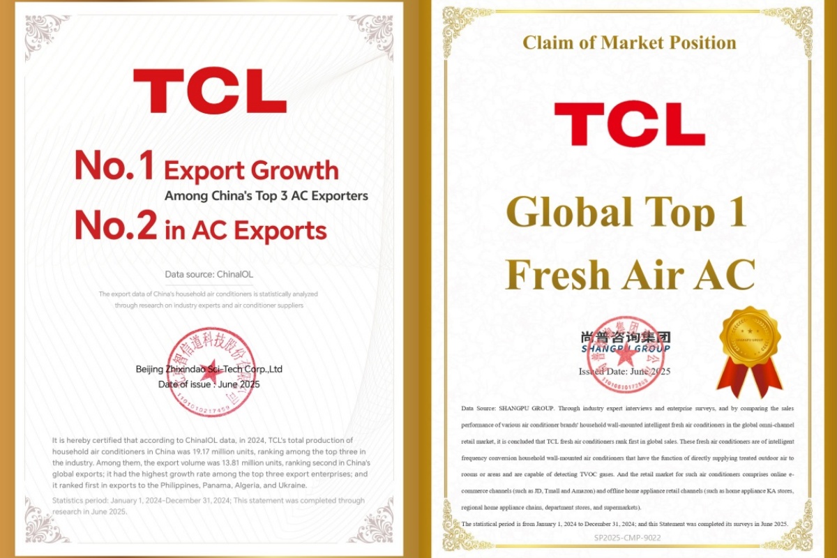 TCL ได้สร้างมาตรฐานใหม่ให้กับอุตสาหกรรมเครื่องปรับอากาศ Fresh Air อย่างต่อเนื่อง จากการประกาศ Global Fresh Air Strategy ในปี 2021 และการเปิดตัวนวัตกรรม FreshIN 3.0 และ FreshIN C7 ที่ มาพร้อมเทคโนโลยีล้ำสมัย อาทิ การควบคุมด้วยเสียง AI, การประหยัดพลังงานด้วย AI สูงสุดถึง 37% การเติมอากาศบริสุทธิ์อย่างต่อเนื่อง และระบบลดเสียงรบกวน ซึ่งทำให้ FreshIN 3.0 ได้รับรางวัล “Smart Fresh Air Technology Innovation Award” ในงาน CES 2025 ตอกย้ำความเป็นผู้นำด้านเทคโนโลยีที่ผสานกับการขยายตลาดทั่วโลก ส่งผลให้บริษัทมียอดขายต่างประเทศคิดเป็น 65% ของยอดขายรวม และครองอันดับ 1 ยอดส่งออกเครื่องปรับอากาศในหลายประเทศอาทิฟิลิปปินส์ปานามาแอลจีเรียและยูเครน