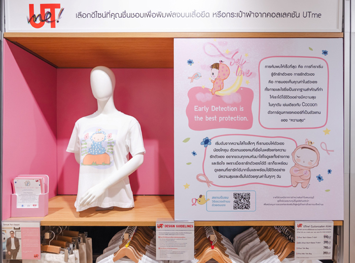 คุณเขมจิรา เทศประทีป ผู้อำนวยการการตลาดและประชาสัมพันธ์ บริษัท ยูนิโคล่ (ประเทศไทย) กล่าวว่า “ยูนิโคล่ มีความมุ่งมั่นที่จะส่งมอบประสบการณ์ที่ดียิ่งขึ้นให้แก่ลูกค้ามาโดยตลอด ด้วยการร่วมสร้างสรรค์ความพิเศษกับแบรนด์และศิลปินที่หลากหลาย สำหรับครั้งนี้ เรามีความยินดีเป็นอย่างยิ่งที่ได้ร่วมมือกับมูลนิธิถันยรักษ์ฯ และครูปาน – สมนึก คลังนอก ศิลปินไทยชื่อดัง ในการเปิดตัวคอลเลคชันพิเศษ UTme Thanyarak โดยคอลเลคชันนี้ไม่เพียงแต่โดดเด่นด้วยดีไซน์อันเป็นเอกลักษณ์ของคาแรคเตอร์ Cocoon เท่านั้น แต่ยังเป็นส่วนหนึ่งของการร่วมสร้างความตระหนักรู้เรื่องมะเร็งเต้านมซึ่งถือเป็นภัยใกล้ตัวของผู้หญิงอีกด้วย โดยทุกการสั่งซื้อ ลูกค้าจะได้รับใบปลิวแนะนำวิธีการตรวจเต้านมด้วยตนเองเบื้องต้น เพื่อเป็นจุดเริ่มต้นของการดูแลสุขภาพตนเอง อีกทั้งยังเป็นการร่วมรณรงค์ให้สังคมไทยห่างไกลจากมะเร็งเต้านม ทั้งหมดนี้สอดคล้องกับปรัชญา LifeWear ของยูนิโคล่ ที่ต้องการสร้างสรรค์เสื้อผ้าที่ช่วยให้ผู้สวมใส่ทุกคนมีชีวิตที่ดีขึ้น พร้อมร่วมส่งต่อสิ่งดี ๆ กลับคืนสู่สังคมไทยอย่างยั่งยืน”