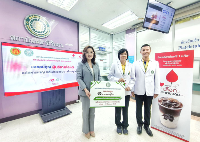 บริษัท กาแฟพันธุ์ไทย จำกัด นำโดย คุณสุขวสา ภูชัชวนิชกุล กรรมการผู้จัดการ ร่วมตอบแทนน้ำใจคนไทย ในโครงการบริจาคเลือดช่วยชายแดน สนับสนุนเครื่องดื่มพันธุ์ไทยฟรีให้แก่ผู้บริจาคโลหิต เพื่อสำรองช่วยเหลือทหารและประชาชนที่ได้รับผลกระทบจากเหตุการณ์ปะทะบริเวณพื้นที่ชายแดนไทย-กัมพูชา ซึ่งทุกท่านที่บริจาคเลือดสามารถรับเครื่องดื่มฟรีได้ทั้งเมนูร้อนและเย็น ที่ร้านกาแฟพันธุ์ไทย สาขาโรงพยาบาลพระมงกุฎเกล้า, สาขาวิทยาลัยพยาบาลกองทัพบก และสาขาองค์การสงเคราะห์ทหารผ่านศึก ตลอดเดือนสิงหาคม 2568 นี้ โดยได้รับเกียรติจาก พล.ต.หญิง ปริยนันทน์ จารุจินดา ผู้อำนวยการสถาบันพยาธิวิทยา ศูนย์อำนวยการแพทย์พระมงกุฎเกล้า ให้การต้อนรับ