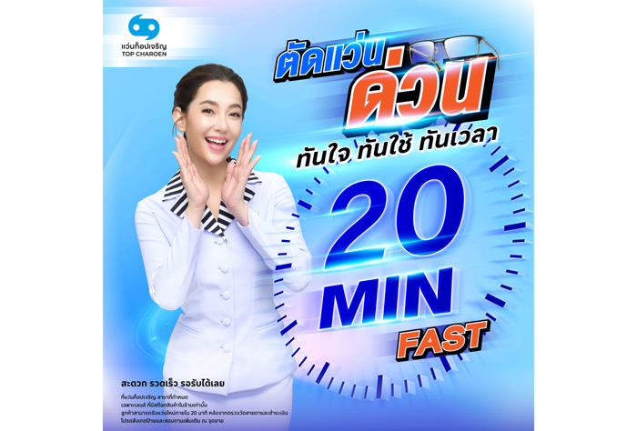 นอกจากนี้ แว่นท็อปเจริญ ยังได้มอบบริการ “แว่นด่วน 20 นาที” เพื่อตอบโจทย์การใช้ชีวิตที่เร่งรีบในปัจจุบัน แต่ยังคงไว้ซึ่งคุณภาพการบริการที่ได้มาตรฐานสากล โดยลูกค้าจะได้รับการตรวจวัดสายตาอย่างละเอียดแม่นยำโดยหมอสายตา (นักทัศนมาตร) และผู้เชี่ยวชาญระดับมืออาชีพ ด้วยเครื่องมือที่ครบครัน รวมถึงเทคโนโลยี AI และระบบการเจียระไนเลนส์อัจฉริยะ ที่มาพร้อมการตัดประกอบแว่นตาด้วยทักษะความชำนาญของช่างแว่นที่มีประสบการณ์ไม่ต่ำกว่า 10 ปี ซึ่งลูกค้าสามารถรับแว่นใหม่ภายใน 20 นาที หลังจากตรวจวัดสายตาและชำระเงินเสร็จสิ้น พร้อมรับบริการล้างทำความสะอาดแว่นตา ปรับดัดทรง ขันน็อต และเปลี่ยนแป้นจมูก ให้สวมใส่สบายกระชับใบหน้าฟรี! ไม่มีค่าใช้จ่าย