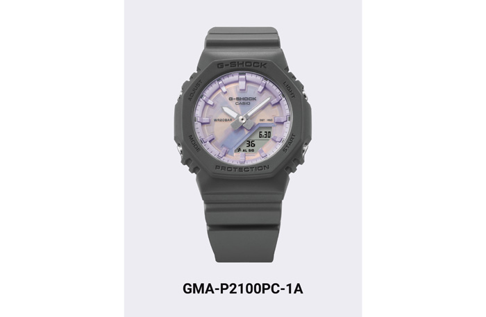 GMA-P2100PC นาฬิการุ่นนี้ถูกพัฒนาขึ้นจากพื้นฐานของรุ่น GMA-S2100 ซึ่งเป็นเวอร์ชั่นที่มีขนาดเล็กและเพรียวบางกว่ารุ่น GA-2100 ที่มีกรอบตัวเรือนแบบ 8 เหลี่ยมอันเป็นที่รู้จักกันดีนาฬิกา GMA-P2100PC เป็นการจับภาพประกายอันงดงามของทะเลในฤดูร้อนที่ถูกอาบด้วยแสงแดด โดยหน้าปัดสีโพลาไรซ์ลดแสงสะท้อน จะทำให้เกิดแสงสะท้อนที่แตกต่างกันเมื่อมองจากแต่ละมุม