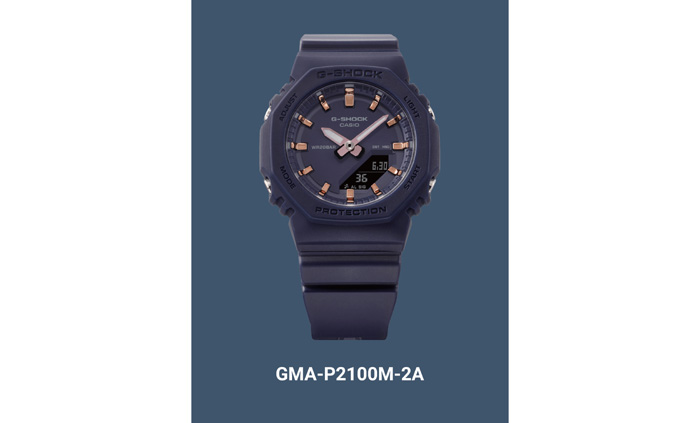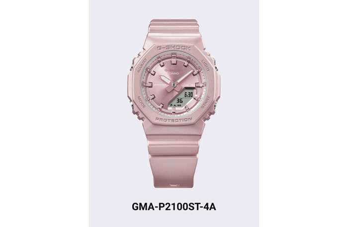 GMA-P2100M นาฬิการุ่นนี้ถูกสร้างขึ้นจากพื้นฐานของรุ่น GMA-S2100 กับดีไซน์ที่นำเสนอทางเลือกด้วยสีสันอันหลากหลาย ทั้งสีน้ำเงินเข้ม สีชมพู และสีขาว ซึ่งเข้ากันได้ดีกับทุกรูปแบบการแต่งตัว ทั้งยังเสริมด้วยสีทองพิงค์โกลด์เพื่อเพิ่มความงามหรู
