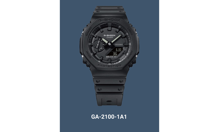 GA-2100-1A1 นาฬิการุ่นนี้ออกแบบขึ้นจากพื้นฐานของรุ่น GA-2100 ที่มากับกรอบตัวเรือนทรง 8 เหลี่ยมอันเป็นเอกลักษณ์ โดยผสานความกลมกลืนเป็นหนึ่งเดียวด้วยสีดำผิวด้าน สร้างรูปลักษณ์ที่ดูเรียบง่ายแต่โดดเด่นและมีสไตล์