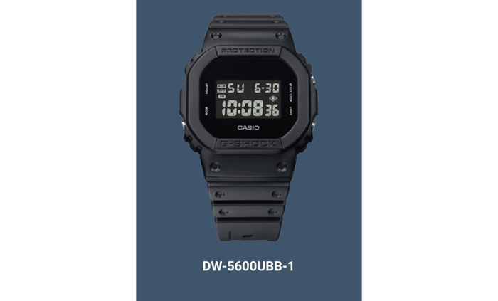 DW-5600UBB-1 สำหรับรุ่นนี้ถูกสร้างขึ้นบนพื้นฐานของรุ่น DW-5600 ซึ่งมากับรูปลักษณ์ระดับไอคอนของ DW-5000C อันเป็น G-SHOCK รุ่นแรกสุด โดยถูกตกแต่งด้วยสีดำผิวด้านเพื่อมอบความเรียบง่ายและความสวยงามที่เข้ากันได้ดีกับทุกรูปแบบการแต่งตัว