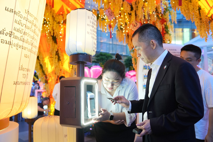 เนื่องในโอกาสครบรอบ 50 ปี การสถาปนาความสัมพันธ์ทางการทูตระหว่างจีนกับไทย “บทกวีจากเครื่อง POS UnionPay” ได้จัดขึ้นภายในเทศกาลโคมไฟจีน ประเทศไทย ได้นำบทกวีจากเด็กๆ บนภูเขาของจีนมาสู่ประเทศไทยเป็นครั้งแรก โครงการการกุศลนี้ภายใต้ธีม “แสงกวีส่องดวงใจ (Poetry Lights the Heart’s Lantern)” มีจุดมุ่งหมายที่จะใช้โคมไฟเป็นสื่อกลาง และบทกวีเปรียบเสมือนจิตวิญญาณ สลักบทกวีอันบริสุทธิ์ของเด็กๆ บนภูเขาลงบนโคมไฟ โคมไฟเหล่านี้เปรียบเสมือนทูตแห่งบทสนทนาระหว่างอารยธรรม ส่งต่อบทกวีของเด็กๆ และเบ่งบานไปตามเส้นทางสายไหมของโครงการหนึ่งแถบหนึ่งเส้นทางเลียบแม่น้ำเจ้าพระยา