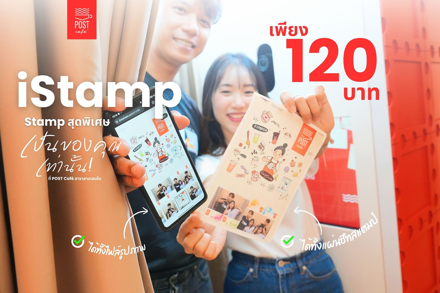 อีกหนึ่งมุมที่ไม่อยากให้พลาด คือทุกคนสามารถทำ iStamp เป็นของตัวเองได้ เพียงแค่ถ่าย Photobooth แล้วคุณก็จะได้แสตมป์ที่เป็นของตัวเอง” จริง ๆ เป็นลายลิมิเต็ดสุด Cute ไม่เหมือนใคร อีกทั้งยังได้ทั้งไฟล์ภาพและแผ่นชีทแสตมป์ กลับบ้านไปด้วย ในราคาเพียง 120 บาทเท่านั้น