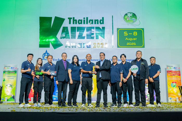 ดร.กิตติวัตร โสมวดี รองผู้จัดการบริหารการผลิต บริษัท ไลอ้อน (ประเทศไทย) จำกัด ผู้ผลิตและจำหน่ายสินค้าอุปโภคบริโภคเพื่อคนไทย มุ่งมั่นดำเนินธุรกิจคู่คุณธรรม พัฒนาสินค้านวัตกรรมเพื่อสุขภาวะที่ดีของผู้บริโภค สังคม และสิ่งแวดล้อม มาตลอดระยะเวลา 56 ปี กล่าวว่า ไลอ้อน (ประเทศไทย) คว้ารางวัลอันทรงเกียรติ Golden Award ประเภท Genba Kaizen จากเวที Thailand Kaizen Award 2025 จัดโดยสมาคมส่งเสริมเทคโนโลยี (ไทย–ญี่ปุ่น) จากผลงาน Integrate Wastewater Management (การจัดการน้ำเสียแบบบูรณาการเพื่อลดการส่งกำจัดภายนอก)