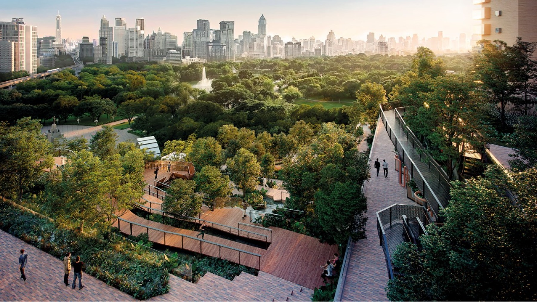 โดยปั้น Roof Park 7 ไร่ พื้นที่ 11,000 ตารางเมตร (ดูดซับ CO₂ เทียบเท่าต้นไม้ใหญ่ 900 ต้น) เชื่อมสวนลุมพินี ให้กลายเป็น Green Spine ของเมือง และเติมมิติไลฟ์สไตล์ที่หลากหลาย ตั้งแต่สตรีทฟู้ด Michelin Guide ไปจนถึงแฟชั่น