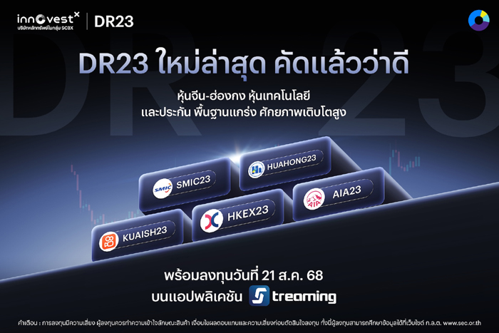 InnovestX เรือธงด้านการลงทุนภายใต้กลุ่มเอสซีบีเอกซ์ (SCBX Group) ตอกย้ำความเป็นผู้นำด้านการลงทุนต่างประเทศ เดินหน้าขยายโอกาสการลงทุนผ่าน ตราสารแสดงสิทธิในหลักทรัพย์ต่างประเทศ Depositary Receipt (DR) เปิดตัว DR23 ชุดใหม่ 5 ตัวรวด หลังจากที่ DR23 3 ตัวแรก HSHD23 CATL23 และ HSHD23 สามารถสร้างผลตอบแทนได้ดีและได้รับความนิยมจนมูลค่าตลาดเติบโตอย่างต่อเนื่อง โดย DR23 ชุดใหม่ครอบคลุมหุ้นจากตลาดหลักทรัพย์ฮ่องกงและจีน ได้แก่ 1) SMIC23 หุ้นผู้นำเซมิคอนดักเตอร์อันดับ 1 ในจีน ที่บริษัทเทคอย่าง Huawei, Qualcomm, Texas Instruments ใช้ 2) KUAISH23 แพลตฟอร์ม Social จาก Kuaishou ผู้ท้าชิง Tiktok ที่มีผู้ใช้งานกว่า 400 ล้านคนต่อวัน 3) HUAHONG23 ผู้ผลิตชิปพิเศษเฉพาะทาง ใช้ในอุตสาหกรรม EV, IoT และพลังงานสะอาด พร้อมรองรับทุกเทรนด์การเติบโตโลก 4) AIA23 ธุรกิจประกันใหญ่ที่สุดในเอเชีย ครอบคลุมประกันชีวิต สุขภาพ การลงทุน และอื่นๆ 5) HKEX23 ตลาดหลักทรัพย์ฮ่องกง ศูนย์กลางการลงทุนชั้นนำ เชื่อมจีนสู่ตลาดโลก ที่ Valuation น่าสนใจเป็นอันดับต้นๆ ของโลก โดย InnovestX มุ่งส่งเสริมให้นักลงทุนไทยเข้าถึงโอกาสการลงทุนในสินทรัพย์ที่มีศักยภาพ และเดินหน้าคัดสรรสินทรัพย์น่าลงทุนจากทั่วโลกอย่างต่อเนื่อง พร้อมให้การเข้าถึงการลงทุนต่างประเทศง่าย สะดวก เสมือนการลงทุนในหุ้นไทย ซื้อขายเป็นเงินบาท ไร้กังวลภาษี ทั้งนี้ DR23 ทั้ง 5 ตัว พร้อมให้นักลงทุนซื้อขายได้แล้วตั้งแต่วันที่ 21 สิงหาคม 2568 เป็นต้นไป ผ่านแอป Streaming