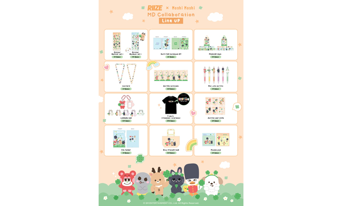 สำหรับ คอลเลกชันพิเศษ Moshi Moshi x RIIZE ประกอบด้วยสินค้าหลากหลายประเภท กว่า 12 รายการ ได้แก่ สินค้ากลุ่มเครื่องเขียน, พวงกุญแจ, เสื้อผ้า, กระเป๋า Eco-Friendly และของใช้อื่น ๆ เช่น Mouse Pad เป็นต้น ซึ่งได้รับการออกแบบมาอย่างพิถีพิถัน โดยนำเอกลักษณ์ของวง RIIZE มาผสมผสานกับดีไซน์อันเป็นเอกลักษณ์ของ MOSHI ซึ่งยังคงราคาที่เข้าถึงได้ เพื่อให้แฟนคลับทุกคนสามารถเป็นเจ้าของได้อย่างเต็มที่ โดยวางเป้าหมายขยายฐานลูกค้าทั้งวัยเรียน วัยทำงาน และกลุ่มแฟนคลับ BRIIZE (บรีซ) ชาวไทยและต่างประเทศ ทั้งนี้ คาดว่าคอลเลกชันนี้ จะช่วยกระตุ้นยอดขายและส่งเสริมการเติบโตของยอดขายจากสาขาเดิม (SSSG) ในช่วงไตรมาส 3 ปี 2568 ได้เป็นอย่างดี