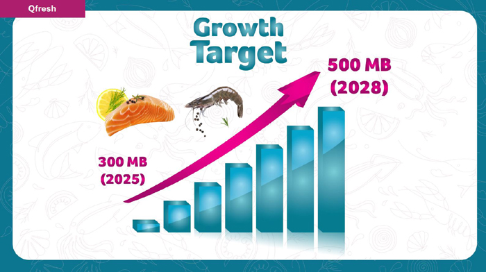 ทั้งนี้ สัดส่วนของผลิตภัณฑ์ในกลุ่มอาหารทะเลแช่แข็งของแบรนด์คิวเฟรช ปัจจุบันประกอบด้วยกุ้ง 42% และผลิตภัณฑ์อาหารทะเลอื่นๆ เช่น แซลมอน ปลากะพงขาว ฮามาจิ และหอยเชลล์ รวมกันอีก 58% ซึ่งสะท้อนถึงความหลากหลายของพอร์ตผลิตภัณฑ์และศักยภาพในการเติบโตของธุรกิจในอนาคต