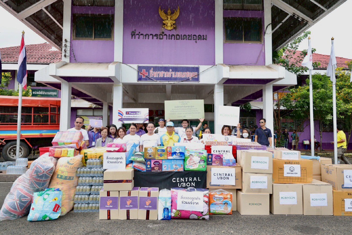 การให้ความช่วยเหลือในครั้งนี้เกิดจากความร่วมแรงร่วมใจของกลุ่มเซ็นทรัล และบริษัทในเครือ ได้แก่ บริษัท เซ็นทรัล รีเทล คอร์ปอเรชั่น จำกัด (มหาชน) บริษัท เซ็นทรัลพัฒนา จำกัด (มหาชน) บริษัท โรงแรมเซ็นทรัลพลาซา จำกัด (มหาชน) อาทิ ห้างสรรพสินค้า ศูนย์การค้า โรงแรม ร้านอาหาร ไทวัสดุ ท็อปส์ โกโฮเซลล์ และเพาเวอร์บาย เป็นต้น โดยได้มีการบริจาคอาหาร น้ำดื่ม และเครื่องใช้อุปโภคบริโภคที่จำเป็น เพื่อนำส่งถึงมือผู้ประสบภัยอย่างทันท่วงที พร้อมจัดตั้งจุดรับบริจาคสิ่งของจำเป็นจากประชาชนทั่วไป เพื่อเปิดโอกาสให้ทุกคนได้มีส่วนร่วมในการส่งต่อความช่วยเหลือ โดยสามารถนำสิ่งของ อาทิ น้ำดื่ม เครื่องนุ่งห่ม และของใช้ในชีวิตประจำวัน ไปบริจาคได้ที่ โรบินสันไลฟ์สไตล์ จังหวัดบุรีรัมย์ โรบินสันไลฟ์สไตล์ จังหวัดสุรินทร์ ไทวัสดุ จังหวัดศรีสะเกษ ศูนย์การค้าเซ็นทรัล จังหวัดอุบลราชธานี และศูนย์การค้าเซ็นทรัล จังหวัดจันทบุรี โดยสิ่งของทั้งหมดจะถูกรวบรวมและกระจายสู่พื้นที่ที่มีความต้องการอย่างเร่งด่วน นอกจากรวบรวมภายในศูนย์ฯ แล้วยังผสานความร่วมมือกับมูลนิธิชัยพัฒนา และมูลนิธิเพชรเกษม ส่งต่อของใช้ที่จะเป็น ทั้งอุปโภค บริโภค ร่วมพันธกิจแก่กองทัพ และศูนย์พักพิงที่เดือดร้อนในพื้นที่อีกด้วย