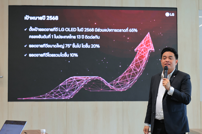 นายอำนาจ สิงหจันทร์ หัวหน้าฝ่ายการตลาด บริษัท แอลจี อีเลคทรอนิคส์ (ประเทศไทย) จำกัด กล่าวว่า “ความสำเร็จในครั้งนี้เกิดจากความมุ่งมั่นในการวิเคราะห์ความต้องการของผู้บริโภค เพื่อให้สามารถพัฒนาสินค้าที่นอกจากจะมีคุณภาพที่เหนือกว่าแล้ว ยังต้องช่วยให้ผู้ใช้งานได้รับคุณค่ามากกว่าที่ซื้อ เช่น LG AI TV ที่เป็นได้ทั้งทีวีและผู้ช่วยส่วนตัว สำหรับช่วงไตรมาสสุดท้ายของปี 2568 เราตั้งเป้าให้ยอดขายทีวี OLED มีส่วนแบ่งการตลาดที่ 65% พร้อมครองแชมป์ 13 ปีซ้อนในประเทศไทย โดยมียอดขายทีวีขนาดใหญ่ 75 นิ้วขึ้นไปโตขึ้น 20% ซึ่งสอดรับกับการคาดการณ์ความต้องการของผู้บริโภคในปีนี้”