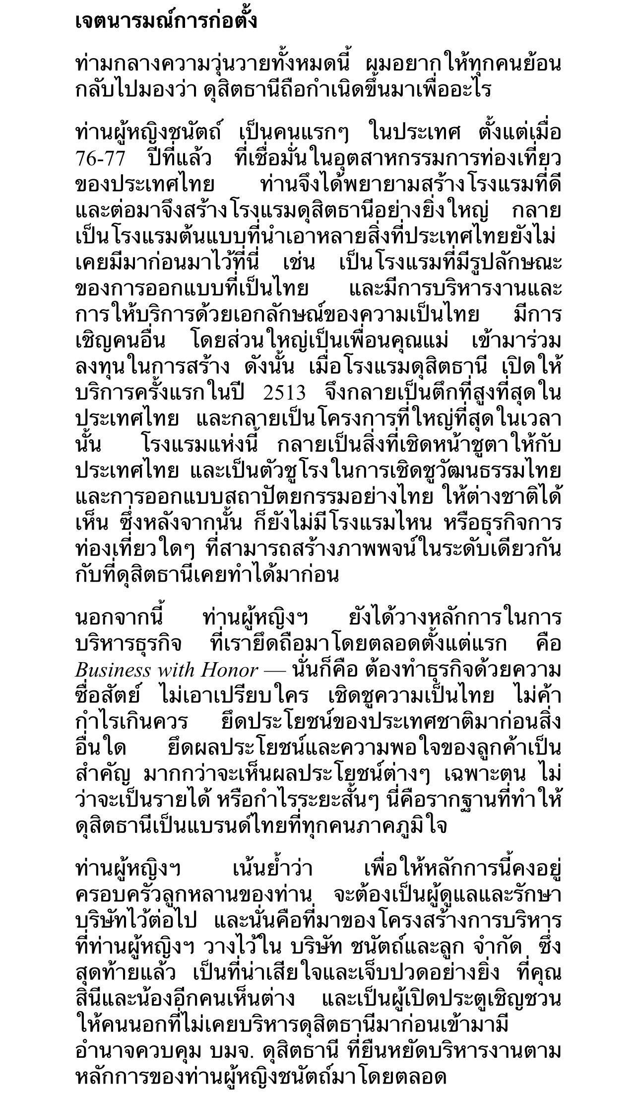 เขายืนยันว่าโครงการใหญ่กำลังจะประสบความสำเร็จ และสิ่งที่ทำคือเพื่อปกป้อง “ดุสิตธานี” ในฐานะแบรนด์ไทย ไม่ใช่รักษาอำนาจตัวเอง