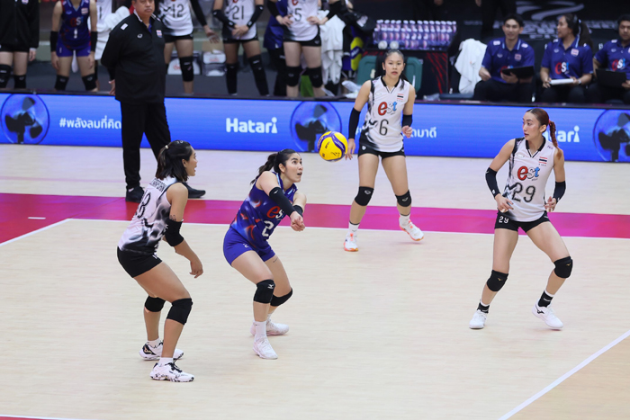 ภายในสนามบรรยากาศเต็มไปด้วยพลังแห่งเสียงเชียร์จากผู้ชมที่ดังกระหึ่มตลอดการแข่งขันทุกแต้มที่แต่ละทีมทำได้สร้างแรงสะเทือนทั้งฮอลล์ แฟนกีฬาไทยและต่างชาติต่างลุกขึ้นส่งกำลังใจอย่างพร้อมเพรียง ขณะที่ช่วงพักเซต กิจกรรมของ Hatari ก็ได้รับความสนใจอย่างล้นหลาม ทั้งเสียงหัวเราะจากผู้ที่ได้ร่วมเล่นเกมและความตื่นเต้นของ ผู้ชมที่คอยลุ้นรับของรางวัล สร้างสีสันและบรรยากาศการเชียร์ให้สนุกสนานยิ่งขึ้น ท่ามกลางการแข่งขันที่ดำเนินไปอย่างเข้มข้นและเร้าใจ