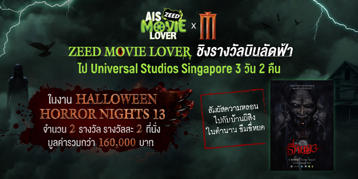 AIS ZEED 5G ตอกย้ำความเป็นผู้นำ “Teen Entertainment Ecosystem” ด้วยการยกระดับประสบการณ์ดูหนังไปอีกขั้น นำโดย นางเบญจพร กำเพ็ชร หัวหน้าสำนักการตลาดกลุ่มลูกค้าพรีเพด ร่วมกับ เมเจอร์ ซีนีเพล็กซ์ โดย นายสุรเชษฐ์ อัศวเรืองอนันต์ รองประธานเจ้าหน้าที่บริหารฝ่ายสื่อโฆษณา บริษัท เมเจอร์ ซีนีเพล็กซ์ กรุ้ป จำกัด (มหาชน) เปิดตัวแคมเปญ “ZEED Movie Lover ฟินทะลุจอ บุก Universal Studios Singapore” ชวนลูกค้าวัยทีนลุ้นฟินทะลุจอ บินลัดฟ้ามอบประสบการณ์สุดเอ็กซ์คลูซีฟ สัมผัสความหลอนของบ้านผีสิงจากภาพยนตร์ไทย “ธี่หยด” ในงาน Halloween Horror Nights สวนสนุก Universal Studios ประเทศสิงคโปร์ เชื่อมโยงคอนเทนต์ภาพยนตร์ไทยสู่เวทีระดับโลก