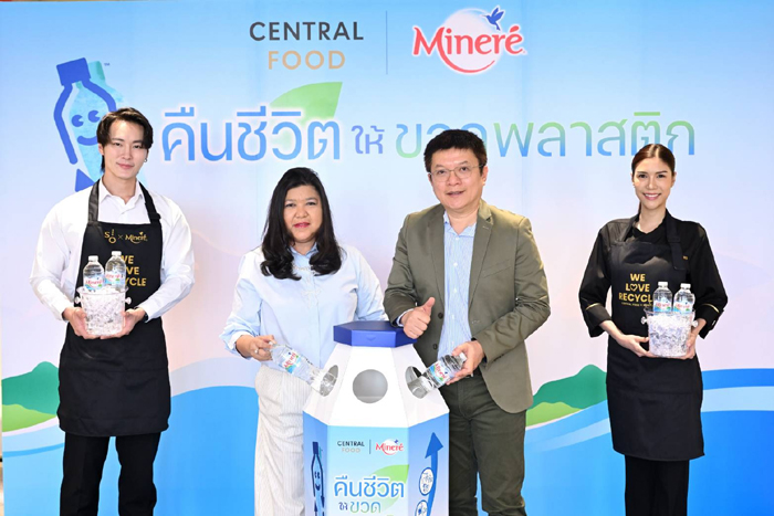 นายไชยงค์ สกุลบริรักษ์ ผู้อำนวยการบริหารหน่วยธุรกิจน้ำดื่ม บริษัท เนสท์เล่ (ไทย) จำกัด กล่าวว่า “โครงการ “คืนชีวิตให้ขวดพลาสติก” ในปีที่ผ่านมา ประสบความสำเร็จเป็นอย่างดี นอกจากจะนำขวดพลาสติกกลับเข้าสู่กระบวนการรีไซเคิลอย่างถูกวิธีแล้ว ในปีนี้ยังต่อยอดด้วยการนำไปผลิตเป็นผ้ากันเปื้อนสำหรับบาริสต้า ประจำร้าน SO! COFF ทั่วประเทศ โดยผ้ากันเปื้อนแต่ละผืน ผลิตจากขวดพลาสติกรีไซเคิล 4 ขวด นอกจากนี้ การตั้งจุดรับขวดพลาสติกที่เซ็นทรัล ฟู้ด ยังช่วยเปิดโอกาสให้ทุกคนเข้ามามีบทบาทในการรีไซเคิลขวดพลาสติกด้วยการทิ้งอย่างถูกวิธี ซึ่งมิเนเร่เป็นแบรนด์น้ำแร่รายแรกและรายเดียวในประเทศไทยที่ใช้พลาสติกรีไซเคิลหรือ rPET”