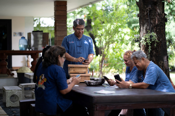 นายพงศกร ชูวิชา ตัวแทนสมาชิกกลุ่มชันโรงบางนํ้าผึ้ง หนึ่งในผู้เข้าร่วมอบรมและเรียนรู้ AI ของโครงการฯ กล่าวว่า วิสาหกิจชุมชนเพาะเลี้ยงและแปรรูปชันโรงตําบลบางน้ำผึ้ง ได้ดําเนินกิจกรรมส่งเสริมการเลี้ยงชันโรงมาเป็นระยะเวลา 5 ปี และมีผลิตภัณฑ์คุณภาพ อาทิ นํ้าผึ้งชันโรง พรอพอลิส เกสรชันโรงและผลิตภัณฑ์แปรรูปต่างๆ อย่างไรก็ตาม กลุ่มยังต้องการเพิ่มทักษะด้านการตลาดและการขยายฐานลูกค้าในยุคดิจิทัล จึงเล็งเห็นความสำคัญของ AI มาประยุกต์ใช้ เพื่อเพิ่มทักษะผู้ประกอบการและขีดความสามารถในการแข่งขัน รวมถึงยกระดับผลิตภัณฑ์ชุมชน ให้เข้าถึงผู้บริโภคทั้งในประเทศและต่างประเทศ “เรานำ AI มาใช้กับการตลาดดิจิทัล ตั้งแต่การสร้างแบรนด์ พัฒนา ปรับปรุงผลิตภัณฑ์ให้ทันสมัยและตรงกับความต้องการของตลาด เพื่อเพิ่มมูลค่าให้กับผลิตภัณฑ์ชันโรงบางนํ้าผึ้ง รวมถึงการพัฒนาแพลดฟอร์มแอปพลิเคชั่นสำหรับจำหน่ายสินค้า ระบบการจัดการหลังบ้าน Chatbot อัจฉริยะ เพื่อให้ข้อมูลและตอบคำถามลูกค้า สร้างระบบการแนะนำผลิตภัณฑ์ตามความสนใจของลูกค้าแต่ละราย ซึ่ง AI สามารถช่วยเพิ่มประสิทธิภาพและลดต้นทุนงานดังที่กล่าวมาได้อย่างมีนัยยะสำคัญ ทำให้การตั้งเป้าเพิ่มยอดขาย 200% และเพิ่มรายได้ของสมาชิก 30% ภายใน 1 ปี เป็นไปได้มากขึ้น” นายพงศกร กล่าวทิ้งท้าย