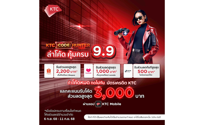 นายณัฐสิทธิ์ สุนทราณู ผู้บริหารสูงสุด ฝ่ายการตลาดบัตรเครดิต “เคทีซี” กล่าวว่า “เคทีซีเข้าใจพฤติกรรมผู้บริโภคยุคใหม่ที่ต้องการความสะดวกและตัวช่วยในการบริหารค่าใช้จ่าย เราจึงเดินหน้าตอกย้ำความเป็นผู้นำตลาด ด้วยสิทธิพิเศษครบทุกแพลตฟอร์ม ทั้ง Shopee, Lazada และเป็นรายแรกที่มีโค้ดส่วนลดบน TikTok Shop ภายใต้แนวคิด ‘KTC Code Hunter’ พร้อมปรับลดยอดใช้จ่ายขั้นต่ำในการผ่อนชำระต่อรายการที่ Shopee เหลือเพียง 1,500 บาทต่อรายการ (เฉพาะสินค้าและร้านค้าที่ร่วมรายการ) เพื่อให้สมาชิกใช้จ่ายได้คล่องตัวมากขึ้น โดยในช่วง 9.9 Mega Sale เดือนกันยายน 2568 นี้ เคทีซีจัดเต็ม 3 โปรโมชันใหญ่ดังนี้