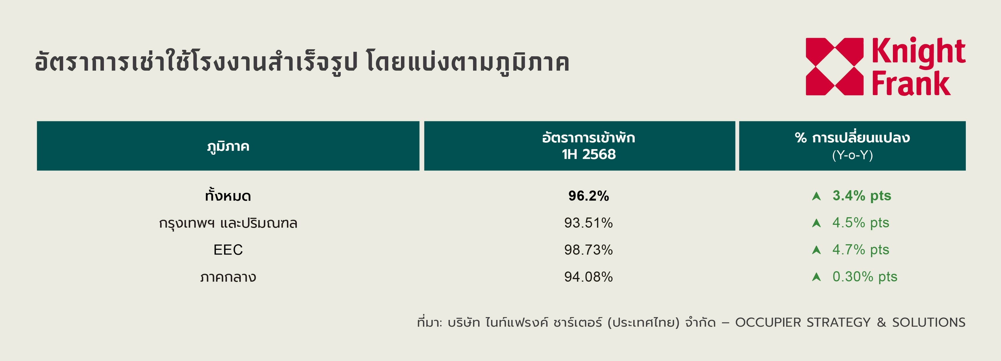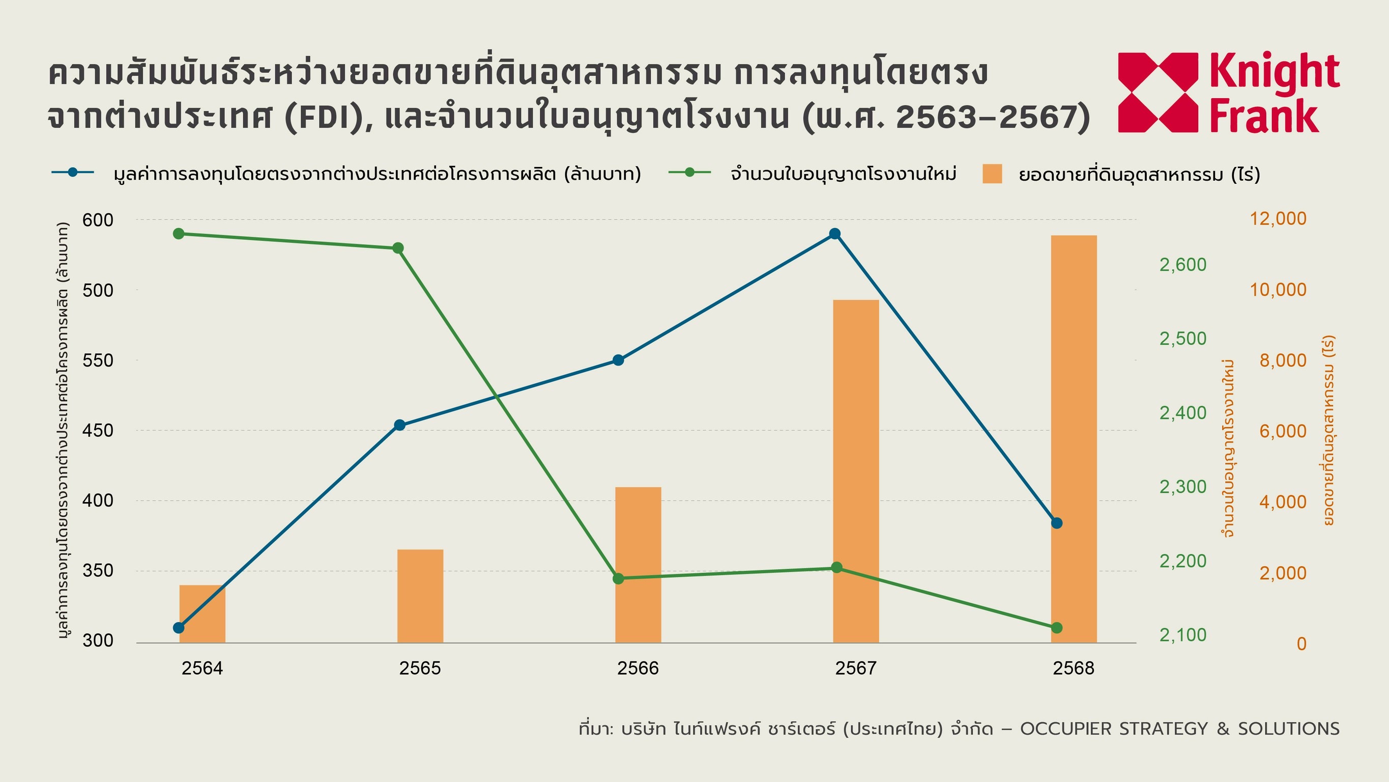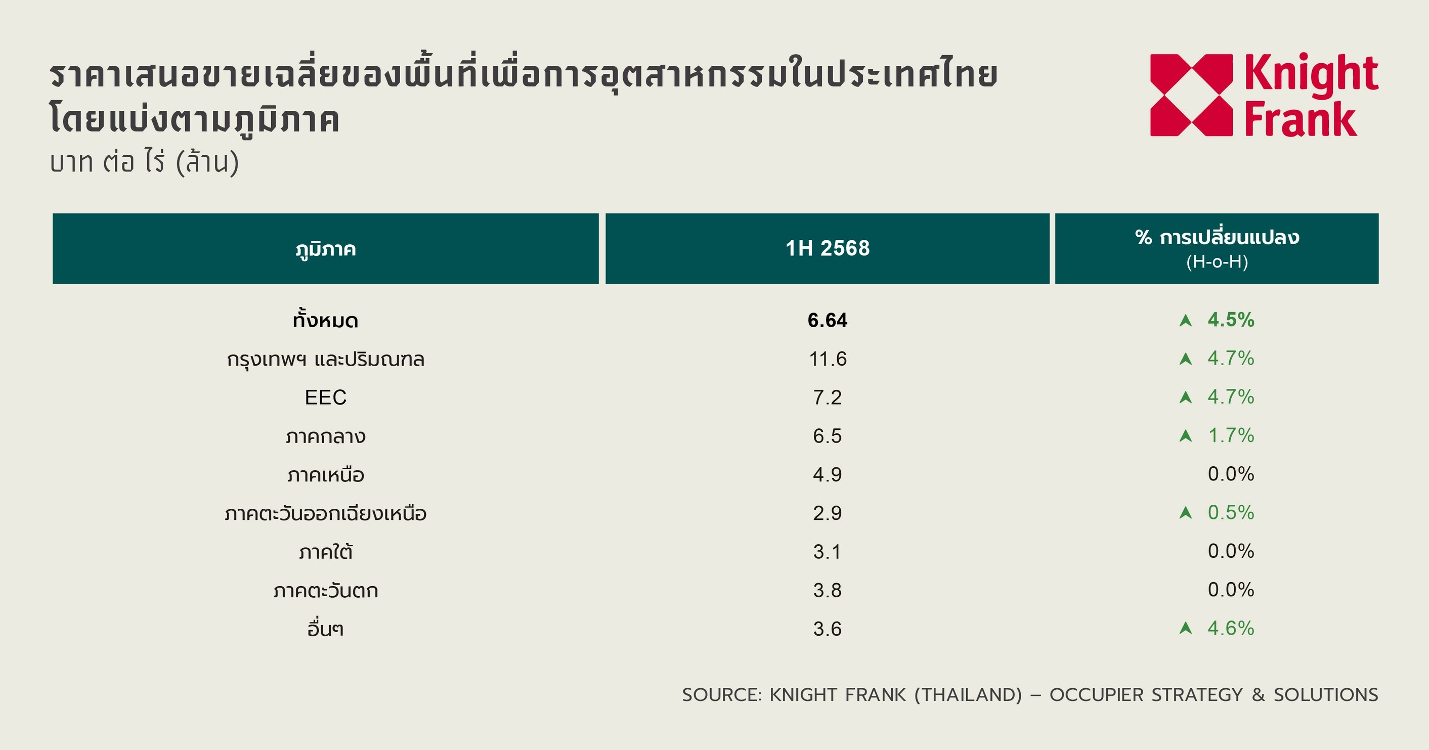 - มุมมองระยะยาว ไนท์แฟรงค์ มองว่า ไทยยังได้เปรียบจากโครงสร้างพื้นฐาน + อุตสาหกรรมมูลค่าสูง + นโยบายที่ชัดเจน พร้อมดึงดูด FDI คุณภาพ