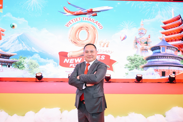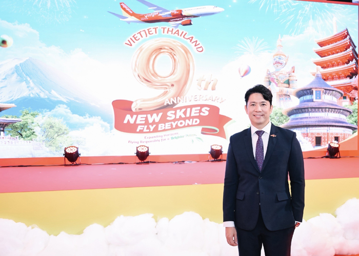 นายปิ่นยศ พิบูลสงคราม รองประธานฝ่ายการพาณิชย์และลูกค้าสัมพันธ์ สายการบินเวียตเจ็ทไทยแลนด์ เปิดเผยว่า ในปีนี้สายการบินเวียตเจ็ทไทยแลนด์ได้ฉลองวาระครบรอบ 9 ปี ภายใต้แนวคิด “New Sky, Fly Beyond” โดยมุ่งเน้นตอกย้ำจุดยืนในการเป็นมากกว่าสายการบินราคาประหยัด แต่ยังให้ความสำคัญกับการส่งมอบบริการที่ครบครันและประสบการณ์การเดินทางที่สนุกสนานตามสโลแกน “Enjoy Flying!” โดยคำนึงถึงความปลอดภัยตามมาตรฐานระดับสากล ทั้งยังส่งเสริมการสร้างมาตรฐานใหม่ของสายการบินราคาประหยัดผ่านการนำเสนอบริการที่หลากหลายและตรงใจคนรุ่นใหม่ เช่น การให้บริการด้านความบันเทิงบนเที่ยวบิน (In-Flight Entertainment) ซึ่งปัจจุบันเวียตเจ็ทไทยแลนด์มีเส้นทางการบินที่ครอบคลุมทั่วทุกภูมิภาคในประเทศ จำนวน 11 เส้นทาง และเส้นทางบินระหว่างประเทศ 21 เส้นทาง โดยสำหรับช่วงครึ่งปีหลังของปี 2568 เวียตเจ็ทไทยแลนด์ยังได้เตรียมเปิดให้บริการเส้นทางใหม่ทั้งในและต่างประเทศเพิ่มเติมอีกจำนวน 6 เส้นทาง ได้แก่ กรุงเทพฯ-นครศรีธรรมราช กรุงเทพฯ–โซล อินชอน) กรุงเทพฯ–โกลกาตา กรุงเทพฯ–โอซาก้า (คันไซ) กรุงเทพฯ–โตเกียว (นาริตะ) และกรุงเทพฯ–อาห์เมดาบัด เพื่อตอบโจทย์ความต้องการเดินทางของผู้โดยสารในช่วงฤดูกาลท่องเที่ยวไฮซีซั่น พร้อมกันนี้ยังเดินหน้ากลยุทธ์การบริหารจัดการฝูงบินโดยมีแผนการขยายฝูงบินอีกจำนวน 9 ลำภายในปี 2568 เพื่อรองรับเส้นทางบินที่เพิ่มขึ้นพร้อมร่วมเป็นส่วนหนึ่งในการยกระดับประเทศไทยให้เป็นฮับการบินและการท่องเที่ยวในระดับภูมิภาคได้ต่อไปในอนาคต