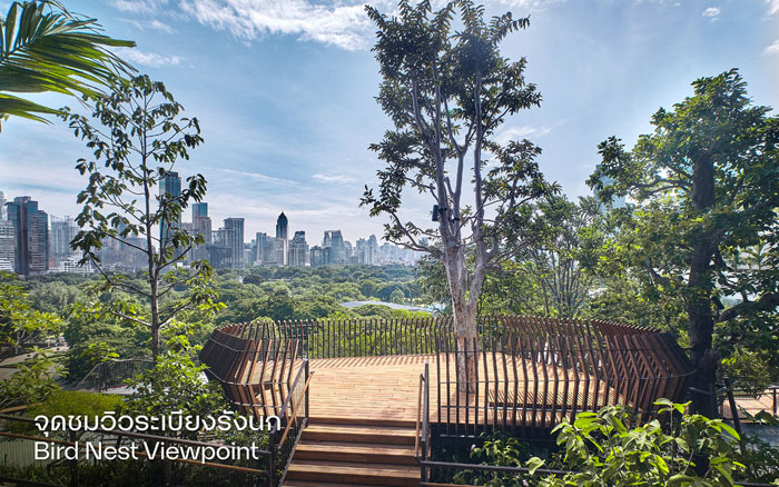 จุดชมวิวระเบียงรังนก (Bird Nest Viewpoint) จุดชมวิวที่มอบทิวทัศน์ที่เชื่อมต่อกันแบบไร้รอยต่อระหว่างสวนดุสิตอรุณ ณ ดุสิต เซ็นทรัล พาร์ค (Dusit Arun at Dusit Central Park) และสวนลุมพินี เกิดเป็นภาพของพื้นที่สีเขียวผืนใหญ่ใจกลางเมืองที่หาได้ยาก รวมกับความสวยงามของเส้นขอบฟ้าของเมืองกรุงเทพฯ แบบพาโนรามา ทำให้พื้นที่นี้กลายเป็นจุดสำคัญที่สามารถมานั่งชมวิวพร้อมเพลิดเพลินไปกับความสวยงามของธรรมชาติ หรือหากมาถ่ายภาพก็ได้มุมสวยไม่เหมือนใคร ทั้งในยามเช้าและค่ำคืน