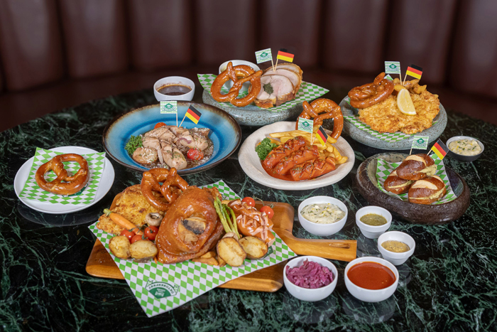 ตลอดช่วงเทศกาล “Oktoberfest” ร้าน Chang Canvas พร้อมเสิร์ฟความพิเศษด้วย 6 เมนูสุดครีเอทีฟ ที่รังสรรค์ขึ้นเฉพาะช่วงเทศกาลนี้ โดยได้แรงบันดาลใจจากรสชาติและวัฒนธรรมอาหารเยอรมันแท้ ๆ ผสานไอเดียสุดสร้างสรรค์ในแบบฉบับของ Chang Canvas เพื่อให้ทุกคำที่ลิ้มลองพาคุณดื่มด่ำบรรยากาศ Oktoberfest ได้อย่างเต็มอารมณ์ ได้แก่ เมนูสตาร์ทเตอร์ “Garlic Longan Bread” ขนมปังสไตล์เยอรมัน สอดไส้เนยกระเทียม ต่อด้วยเมนูจานด่วนประจำชาติเยอรมัน “Currywurst & Pretzel” ไส้กรอกหมู Bockwurst ย่างหอม ๆ เสิร์ฟคู่ เฟรนช์ฟรายส์ และเพรทเซล ราดด้วยซอสมะเขือเทศผงกะหรี่ อีกหนึ่งเมนูที่คนรักไส้กรอก ไม่ควรพลาด! “Slow-Cooked Butter Beer Sausage with Pretzel” ไส้กรอก Bratwurst ตุ๋นจนเข้าเนื้อ ในซอสบัตเตอร์เบียร์ที่ผสมผสานด้วยซาวเคราท์ มันฝรั่ง มะเขือเทศ พร้อมเสิร์ฟคู่เพรทเซล ไปกัน ต่อกับเมนู “Chicken Schnitzel with Potato Wedge & Pretzel” ไก่ชุบเกล็ดขนมปังทอดสไตล์เยอรมัน โดยแป้งขนมปังเป็นสูตรผสมเนย จึงให้กลิ่นที่หอมเนยมาก เสิร์ฟคู่มันฝรั่งติดเปลือกทอด เพรทเซล ซอสทาร์ทาร์และเลม่อน อีกหนึ่งเมนูที่น่าสนใจ “Crispy Pork Roll with Mashed Potato & Pretzel” หมูกรอบม้วนสไตล์เยอรมัน สอดไส้ผักโขม เสิร์ฟคู่มันบด เพรทเซล และซอสไวน์แดง ส่วนใครที่ชอบแบบเซ็ตคอมโบ รวมทุกเมนูไฮไลท์ แนะนำเมนูประจำเทศกาล Oktoberfest สุดคุ้ม “Oktoberfest Platter” ตั้งแต่ขาหมูเยอรมันสูตรซิกเนเจอร์ของร้าน หนังกรอบ เนื้อหอมนุ่ม พร้อมไก่ชุบเกล็ดขนมปังทอดสไตล์เยอรมัน และไส้กรอก Bockwurst ย่าง แต่ละเมนูเสิร์ฟพร้อมซอส Pairing และเครื่องเคียง แน่น ๆ อาทิ มันฝรั่งติดเปลือกทอด เพรทเซล ผักรวมย่าง ซาวเคราท์ เป็นต้น ราคา 1,190 บาท