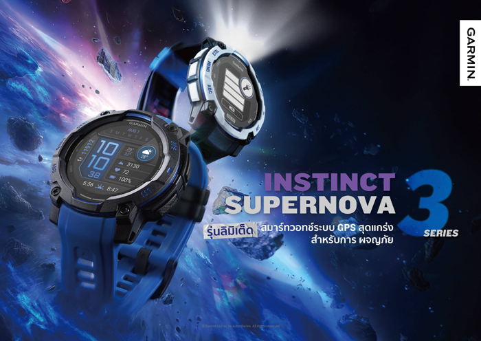 Instinct 3 Supernova Limited Edition พร้อมให้ชาวไทยจับจองเป็นเจ้าของได้ในวันที่ 25 กันยายน 2568 นี้ โดย Instinct 3 Supernova Limited Edition รุ่นหน้าจอ AMOLED มาพร้อมตัวเลือก 2 ขนาด 50 มม. ในราคา 17,990 บาท และ 45 มม. ในราคา 16,490 บาท ส่วน Instinct 3 Supernova Limited Edition รุ่น Solar ขนาด 50 มม. มาในราคา 16,490 บาท สำหรับ Instinct 3 Crossover AMOLED จะพร้อมให้ชาวไทยจับจองเป็นเจ้าของตั้งแต่วันที่ 15 ตุลาคมนี้เป็นต้นไป โดยมีตัวเลือก 2 สี ได้แก่ สี Charcoal Black และสี Bronze Sunburst ในราคา 20,490 บาท ส่วนรุ่น Instinct Crossover AMOLED – Tactical Edition มาพร้อมสี Black ในราคา 23,990 บาทที่ตัวแทนจำหน่ายอย่างเป็นทางการของการ์มินทุกสาขา ติดตามข้อมูลสินค้าเพิ่มเติมได้ที่ https://www.garmin.com/th-TH/p/1800201 และ https://www.garmin.com/th-TH/p/pn/010-03020-43 หรือที่ เฟซบุ๊กแฟนเพจ Garmin Thailand และ อินสตาแกรม Garmin Thailand