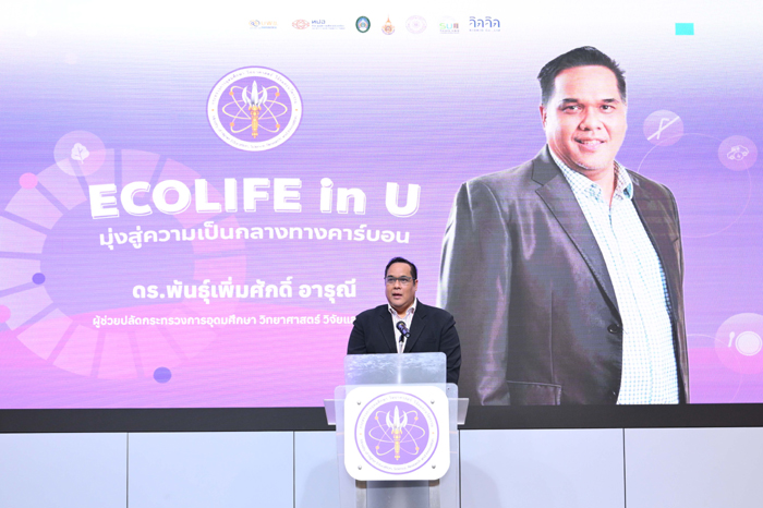 ดร.พันธุ์เพิ่มศักดิ์ อารุณี ผู้ช่วยปลัดกระทรวงการอุดมศึกษา วิทยาศาสตร์ วิจัยและนวัตกรรม (อว.) กล่าวว่า “โครงการ “ECOLIFE in U” นับเป็นก้าวสำคัญของกระทรวง อว. ในการพัฒนาสถาบันอุดมศึกษาให้มีคุณภาพอย่างยั่งยืน (Sustainable University) และมุ่งสู่เป้าหมาย “ความเป็นกลางทางคาร์บอน” (Carbon Neutrality) โดยมุ่งเน้นการสร้างการรับรู้และปลูกจิตสำนึกด้านสิ่งแวดล้อมให้กับนิสิต นักศึกษา และบุคลากรในสถาบันอุดมศึกษาโดย “U” หมายถึงทั้งนิสิต นักศึกษา (You) และมหาวิทยาลัยทั่วประเทศ (University) ซึ่งเริ่มดำเนินโครงการตั้งแต่ปี 2567”