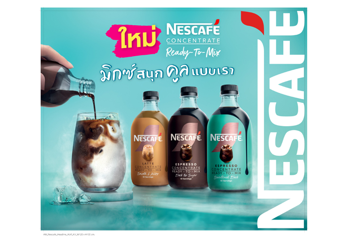 วันนี้ เนสกาแฟเปิดตัว “เนสกาแฟ คอนเซนเทรต เรดี้ทูมิกซ์” (Nescafé Concentrate Ready-to-Mix) กลุ่มผลิตภัณฑ์ใหม่ที่ถือเป็นนวัตกรรมกาแฟเข้มข้นพร้อมชงครั้งแรกของเนสกาแฟในประเทศไทย มุ่งขยายพอร์ตผลิตภัณฑ์กาแฟกลุ่มใหม่ภายใต้กลยุทธ์ระดับโลก เพื่อต่อยอดวัฒนธรรมการดื่มกาแฟเย็นที่กำลังเติบโต โดยนวัตกรรม เนสกาแฟ คอนเซนเทรต เรดี้ทูมิกซ์ นี้ได้รับการพัฒนาขึ้นมาเพื่อตอบโจทย์ความต้องการที่เพิ่มขึ้นของคอกาแฟกลุ่มมิลเลนเนียลและ Gen Z ที่ต้องการสัมผัสประสบการณ์การดื่มด่ำกาแฟเย็นที่มีคุณภาพ สะดวกสบาย และสามารถสร้างสรรค์เมนูกาแฟต่าง ๆ ที่หลากหลายได้ในแบบของตัวเอง
