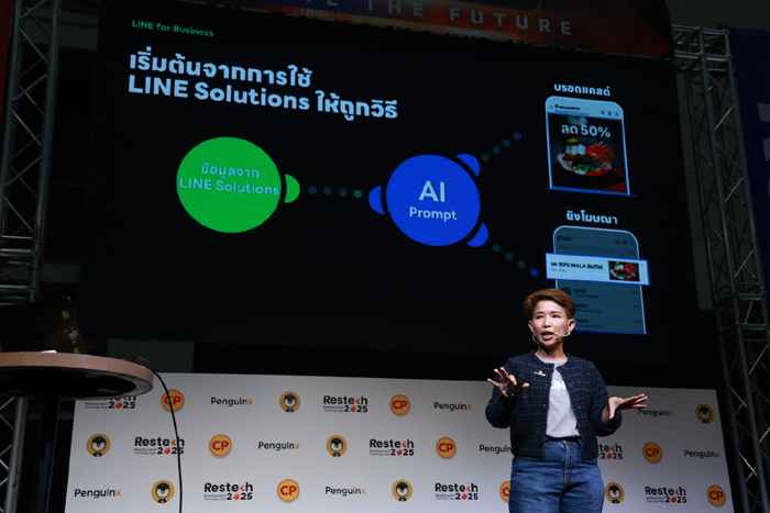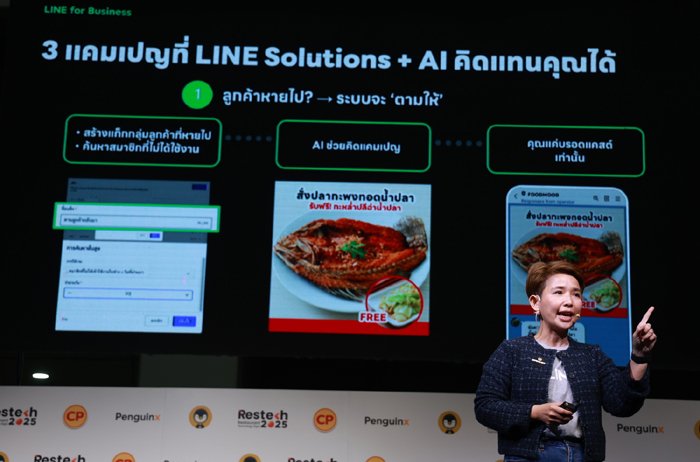 นางสาวสุวิดา จิรประเสริฐกุล หัวหน้าฝ่ายพัฒนาธุรกิจเอสเอ็มอี LINE ประเทศไทย กาง Pain Point พร้อมแก้โจทย์ผู้ประกอบการร้านอาหาร SMEs บนเวที ‘Restech 2025 Taste The Future & ตั้งตัว Franchise and Investment 2025’ ในหัวข้อ ‘พลิกเกมธุรกิจอาหารยุคใหม่ ด้วย LINE Solutions ผสาน AI’ ระบุว่า ร้านอาหารหลายแห่งนิยมใช้ LINE OA เป็นช่องทางถาม-ตอบกับลูกค้า รวมถึงบริการสำรองโต๊ะล่วงหน้า แต่กลับพบว่า ผู้ประกอบการไม่ได้เข้าไปปรับเปลี่ยนฟังก์ชันให้เหมาะสมกับกลุ่มเป้าหมาย ทำให้การใช้งาน LINE OA ยังไม่เต็มประสิทธิภาพเท่าที่ควร