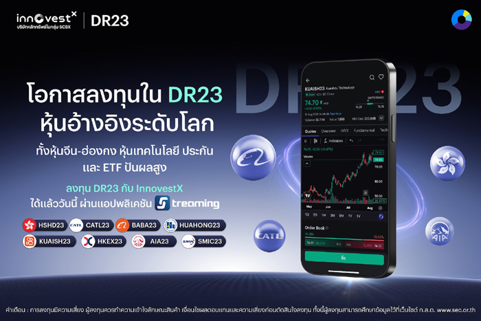 บริษัทหลักทรัพย์ อินโนเวสท์ เอกซ์ จำกัด (InnovestX) เรือธงด้านการลงทุนภายใต้กลุ่มเอสซีบีเอกซ์ (SCBX Group) ตอกย้ำการเป็นแพลตฟอร์มลงทุนที่ให้บริการลงทุนครบทุกสินทรัพย์ เข้าถึงง่าย รองรับทุกสภาวะตลาด (All – weather Investment Products) พร้อมคัดเลือกโอกาสเด่นจากตลาดโลกมาอยู่ในมือของนักลงทุนไทย หนึ่งในผลิตภัณฑ์ที่ได้รับการตอบรับสูงสุดคือ DR23 (Depositary Receipt 23) ที่ช่วยให้นักลงทุนไทยเข้าถึงหุ้นคุณภาพในจีนและฮ่องกงได้สะดวก ผ่านตลาดหลักทรัพย์ไทย ซึ่งเต็มไปด้วยบริษัทชั้นนำที่มีศักยภาพการเติบโต ทั้งหุ้นอุตสาหกรรมเทคโนโลยีขั้นสูง หุ้นเติบโตมั่นคง และหุ้นปันผล นับตั้งแต่เปิดตัวในเดือนมิถุนายน 2568 DR23 สร้างผลงานโดดเด่นภายใน 3 เดือน มูลค่าตลาด (Market Cap) เพิ่มจาก 50 ล้านบาท สู่ 1,300 ล้านบาท ขณะที่มูลค่าการซื้อขาย (Trading Value) สะสมกว่า 2,200 ล้านบาทในเดือนกันยายน 2568 ส่งผลให้ DR23 ขึ้นเป็นอันดับ 3 ของตลาด DR ในประเทศไทยในแง่มูลค่าการซื้อขายรวม สะท้อนถึงความเชื่อมั่นของนักลงทุนและศักยภาพของ InnovestX ในการยกระดับโอกาสลงทุนสู่ระดับโลก