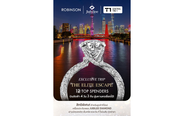 แคมเปญ The Elite Escape: Shanghai Edition จัดขึ้นระหว่าง 1 กันยายน 2568 – 13 ตุลาคม 2568 รวม 43 วัน ที่เคาน์เตอร์ Jubilee Diamond เฉพาะในห้างโรบินสันทุกสาขา (ยกเว้นสาขาจังซีลอน และพะเยา) โดยลูกค้าที่มียอดใช้จ่ายสูงสุด 12 ท่าน ผ่านบัตรเครดิต เซ็นทรัล เดอะวัน จะได้รับสิทธิ์ร่วมทริปหรู เซี่ยงไฮ้ 4 วัน 3 คืน รางวัลละ 2 ที่นั่ง มูลค่ารางวัลละ 85,000 บาท ระยะเวลาการเดินทาง วันที่ 5–8 พฤศจิกายน 2568