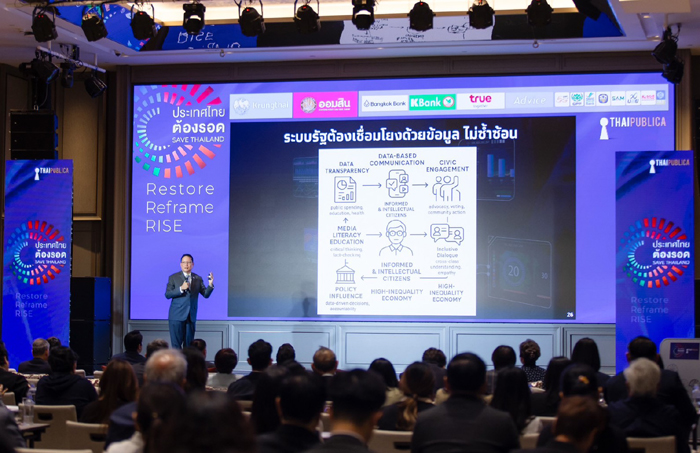 นายผยง ศรีวณิช ประธานสมาคมธนาคารไทย และกรรมการผู้จัดการใหญ่ ธนาคารกรุงไทย ร่วมงานสัมมนา “ประเทศ ไทยต้องรอด SAVE THAILAND: Restore • Reframe • Rise” จัดโดยสำนักข่าวออนไลน์ไทยพับลิก้า โดยนำเสนอมุมมองการขับเคลื่อนเศรษฐกิจไทยภายใต้หัวข้อ “ฝ่าวิกฤต พลิกอนาคตเศรษฐกิจไทย ด้วยพลวัตใหม่” เมื่อวันที่ 30 กันยายน 2568