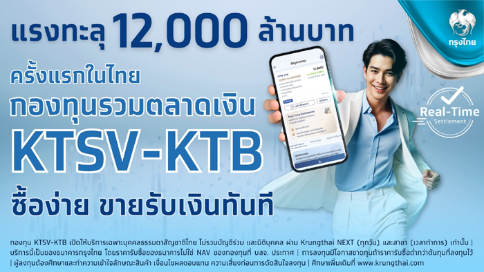 ธนาคารกรุงไทยสร้างปรากฎการณ์ในตลาดกองทุน KTSV-KTB ยอดขายทะลุ 12,000 ล้านบาท สะท้อนความต้องการของนักลงทุนที่มองหาการลงทุนที่เสี่ยงต่ำ-สภาพคล่องสูง ตอกย้ำความสำเร็จบริการ Real-Time Settlement (T+0) ขายกองทุนได้เงินทันที เพิ่มความยืดหยุ่นในการจัดการกระแสเงินสด ปรับพอร์ตการลงทุนได้ทันใจในทุกสถานการณ์
