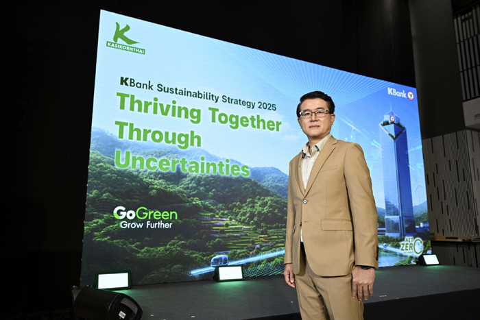 นายจงรัก รัตนเพียร ผู้จัดการใหญ่ ธนาคารกสิกรไทย แถลงข่าว “ยุทธศาสตร์ความยั่งยืน ธนาคารกสิกรไทย 2568: ฝ่าคลื่นความเปลี่ยนแปลง สู่การเติบโต ที่ยั่งยืนไปด้วยกัน” ประกาศปรับยุทธศาสตร์ความยั่งยืน จากแกน ESG สู่การจัดการประเด็นสำคัญแบบองค์รวมเชื่อมโยงทุกมิติที่เกี่ยวข้อง โดยกำหนด ความมุ่งหมายสำคัญเป็นแกนการจัดการ (Issue-based strategy) 3 ประการ ได้แก่ การเป็นธนาคารที่ทุกคนไว้วางใจ การสร้างความยืดหยุ่นเพื่อรับมือกับความท้าทายในอนาคต และการสร้างการเติบโตอย่างยั่งยืนร่วมกัน พร้อมยกระดับการสนับสนุนทางการเงินเพื่อความยั่งยืน เป็น 4-5 แสนล้านบาท ภายในปี 2573 (ค.ศ.2030) และตั้งเป้าหมายเป็นธนาคารผู้ให้บริการโซลูชันด้านสภาพภูมิอากาศที่ครอบคลุมที่สุด ณ ธนาคารกสิกรไทย สำนักงานใหญ่ อาคารพหลโยธิน เมื่อเร็ว ๆ นี้