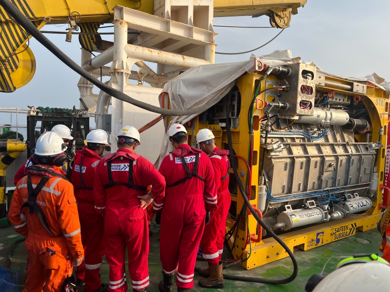 ปฏิบัติการครั้งนี้เป็นการทำงานร่วมกันของหลายภาคส่วน ระหว่าง S2 Robotics, SAFEEN Group และ Kongsberg Ferrotech ได้ดำเนินการเตรียมความพร้อมของพื้นที่ปฏิบัติการใต้ทะเล ไม่ว่าจะเป็นการขุดลอกพื้น ทรายใต้ท่อ (Dredging) และการทำความสะอาดท่อเบื้องต้น (Marine Growth Cleaning) จากนั้นเรือ “SAFEEN Surveyor” ได้นำหุ่นยนต์ Nautilus MK2 ที่เตรียมความพร้อมโดยทีมงาน S2 Robotics และ Kongsberg Ferrotech ไปยังจุดหมายเพื่อเริ่มปฏิบัติการ