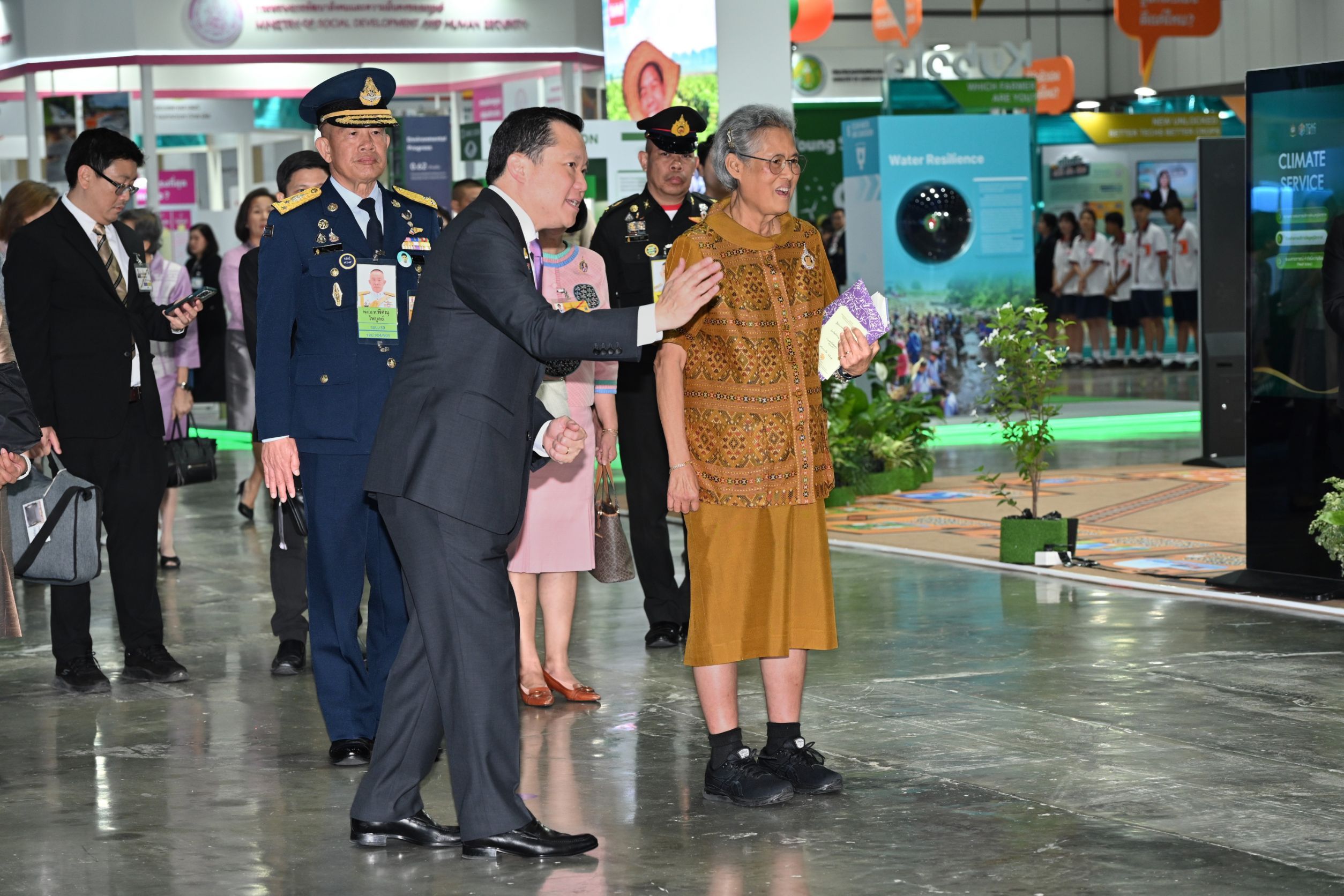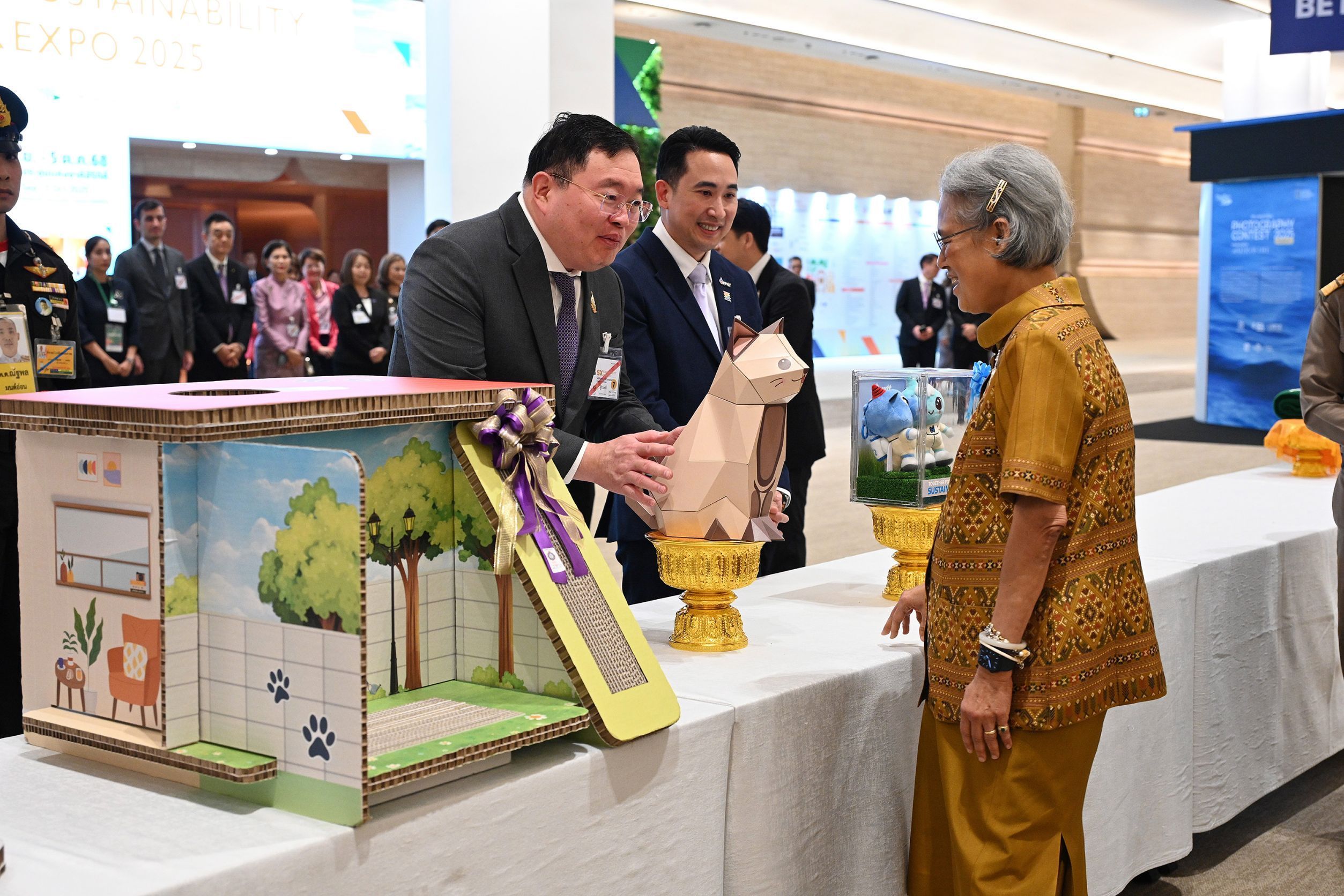 ในโอกาสนี้ เสด็จฯ ทอดพระเนตรนิทรรศการมูลนิธิชัยพัฒนา โดยมี ดร.สุเมธ ตันติเวชกุล เลขาธิการมูลนิธิชัยพัฒนา เฝ้าฯ รับเสด็จ จากนั้น เสด็จฯ ไปทอดพระเนตรนิทรรศการจากมูลนิธิแม่ฟ้าหลวง ในพระบรมราชูปถัมภ์, สำนักงานคณะกรรมการพิเศษเพื่อประสานงาน โครงการอันเนื่องมาจากพระราชดำริ (กปร.), และนิทรรศการเครือข่ายธุรกิจยั่งยืนจากบริษัท และองค์กรชั้นนำของต่างประเทศ เป็นต้น การจัดงาน Sustainability Expo ในครั้งนี้ เกิดขึ้นจากความร่วมมือของผู้ร่วมก่อตั้ง ซึ่งประกอบด้วย บริษัท เครือเจริญโภคภัณฑ์ จำกัด / เฟรเซอร์ส พร็อพเพอร์ตี้ / บริษัท ปตท. จำกัด (มหาชน) / เอสซีจี / บริษัท ไทยเบฟเวอเรจ จำกัด (มหาชน) และ บริษัท ไทยยูเนี่ยน กรุ๊ป จำกัด (มหาชน) รวมถึงเครือข่ายห่วงโซ่อุปทานแห่งประเทศไทยหรือ TSCN (Thailand Supply Chain Network) และผู้สนับสนุนการจัดงานจากทุกภาคส่วนทั้งในและต่างประเทศ มีกำหนดจัดขึ้นระหว่างวันที่ 26 กันยายน ถึง 5 ตุลาคมนี้