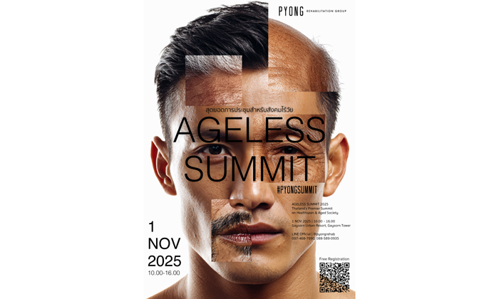 เปียง รีแฮบบิลิเทชัน กรุ๊ป (PYONG Rehabilitation Group) กลุ่มบริษัทประกอบธุรกิจด้านเวชศาสตร์ฟื้นฟูครบวงจร ประกาศจัดงาน Ageless Summit 2025 การประชุมด้านสุขภาพครั้งประวัติศาสตร์ของไทย เพื่อเปิดมุมมองใหม่และพาคุณออกจากความเชื่อเดิม ๆ เกี่ยวกับอายุและความเสื่อมถอย งานจะจัดขึ้นในวันเสาร์ที่ 1 พฤศจิกายน 2568 เวลา 10.00 – 16.00 น. ณ Gaysorn Urban Resort ชั้น 19 อาคารเกษรทาวเวอร์โดยเปิดให้ผู้สนใจเข้าร่วมงานได้ฟรี ไม่มีค่าใช้จ่าย