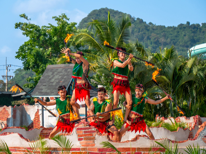 ● เพลิดเพลินไปกับการแสดงเต้นลิมโบและระบำฮาวายพ่นไฟสุดตระการตาที่ Double Wave Pool