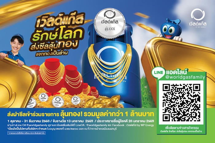 แคมเปญ ‘เวิลด์แก๊ส รักษ์โลก ส่งซีลลุ้นทอง แจกทองเป็นล้าน’ เริ่มตั้งแต่วันที่ 1 ตุลาคม 2568 ถึงวันที่ 31 ธันวาคม 2568 โดยจะมีการจับรางวัลในวันที่ 13 มกราคม 2569 และประกาศผลผ่านทาง LINE Official Account: @worldgasfamily ในวันที่ 28 มกราคม 2569