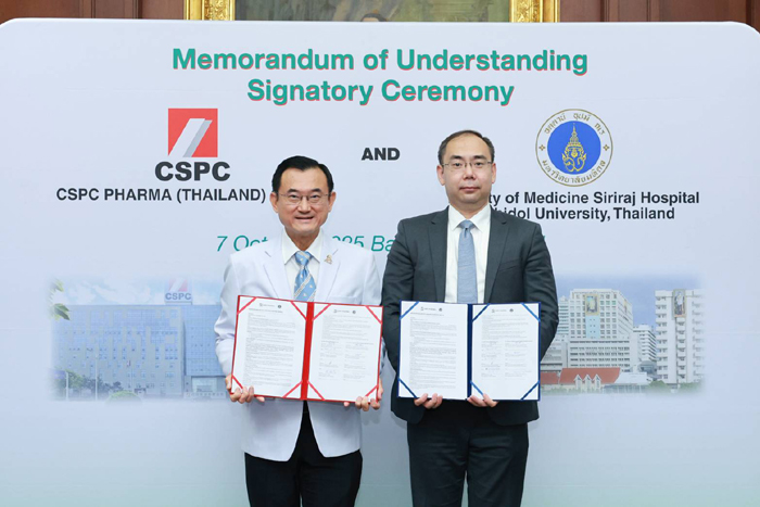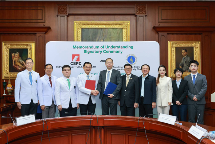ถือเป็นความร่วมมือครั้งสำคัญในการพัฒนานวัตกรรมและเพิ่มพูลองค์ความรู้ในการดูแลผู้ป่วยหลอดเลือดสมอง (stroke) ของประเทศไทย กับ พิธีลงนามบันทึกข้อตกลงความเข้าใจ (MOU) ในการร่วมมือเกี่ยวกับงานวิจัยและการดูแลผู้ป่วยหลอดเลือดสมอง (stroke) ระหว่าง บริษัท ซีเอสพีซี ฟาร์มา (ไทยแลนด์) ผู้พัฒนา ผลิต และจัดจำหน่ายผลิตภัณฑ์ยา ที่มีสำนักงานใหญ่ในประเทศจีน และ คณะแพทยศาสตร์ศิริราชพยาบาล มหาวิทยาลัยมหิดล สถาบันชั้นนำทางการแพทย์ ที่มีชื่อเสียงในด้านงานวิจัย ความรู้วิชาการ และการบริการผู้ป่วยในระดับแถวหน้าของไทย โดยมีวัตถุประสงค์เพื่อการร่วมมือทางด้านงานวิจัย, การแลกเปลี่ยนองค์ความรู้ และพัฒนาการดูแลผู้ป่วยด้วยนวัตกรรมใหม่ โดยมุ่งหวังเพื่อเพิ่มพูลองค์ความรู้ด้านการรักษา และการจัดการผู้ป่วย stroke ผ่านความร่วมมือทางด้านการศึกษาวิจัย แลกเปลี่ยนความรู้ทางวิชาการ เทคโนโลยีทางการแพทย์ และยานวัตกรรม ณ ห้องประชุม คณะแพทยศาสตร์ ตึกอำนวยการ ชั้น 2 โรงพยาบาลศิริราช