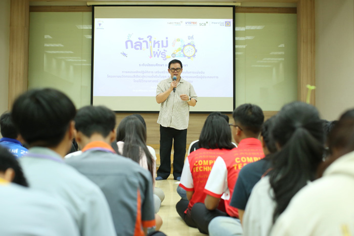 กลุ่มเอสซีบีเอกซ์ โดยธนาคารไทยพาณิชย์ จำกัด (มหาชน) จัดค่ายอบรมเชิงปฏิบัติการเตรียมความพร้อมและดึงศักยภาพให้เยาวชนสายวิทยาศาสตร์ระดับมัธยมศึกษาและอาชีวศึกษา ในการจัดทำโครงงาน “นวัตกรรมสีเขียวสู่ความยั่งยืนในยุค AI” ภายใต้โครงการ “กล้าใหม่…ใฝ่รู้” ปีที่ 20 เพื่อนำไปพัฒนาชุมชนหรือสถานประกอบการ โดยใช้วิทยาศาสตร์ เทคโนโลยี และนวัตกรรม โดยมี นายศักดิ์สิทธิ์ ปิติพงศ์สุนทร ผู้อำนวยการอาวุโส ผู้บริหารสายงานกิจกรรมเพื่อสังคม ธนาคารไทยพาณิชย์ ดร.กัลยา อุดมวิทิต รองผู้อำนวยการ สำนักงานพัฒนาวิทยาศาสตร์และเทคโนโลยีแห่งชาติ (สวทช.) ศ.ดร.ปรเมษฐ์ มนูญพงศ์ ผู้อำนวยการสำนักวิชาวิทยาศาสตร์และเทคโนโลยีสารสนเทศ สถาบันวิทยสิริเมธี (VISTEC) พร้อมทีมวิทยากรจาก SCB Academy นักวิจัยจากศูนย์เทคโนโลยีอิเล็กทรอนิกส์และคอมพิวเตอร์แห่งชาติ (NECTEC) สวทช. และ VISTEC ร่วมบ่มเพาะ ดึงศักยภาพของเยาวชน เปิดประสบการณ์ให้เยาวชนเห็นถึงผลงานนวัตกรรมที่หลากหลายของนักวิจัยจาก NECTEC และ VISTEC เช่น AI Robotics, IoT และ Kidbright พร้อมแนะนำแนวทางการพัฒนานวัตกรรม รวมถึงการทำโครงงานให้ประสบความสำเร็จ สามารถตอบโจทย์ชุมชนและสถานประกอบการได้อย่างยั่งยืน ณ ศูนย์ฝึกอบรมธนาคารไทยพาณิชย์ หาดตะวันรอน จ.ชลบุรี